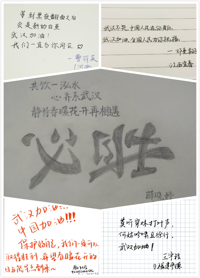 写一句祝福的话。新型冠状病毒感染的肺炎疫情牵动全国人心,学院号召学生要守望相助、众志成城,通过不同方式驰援武汉。学院学生宣传中心收集了来自不同地区学生的祝福,表达了美好的愿望,传递出真诚的牵挂。